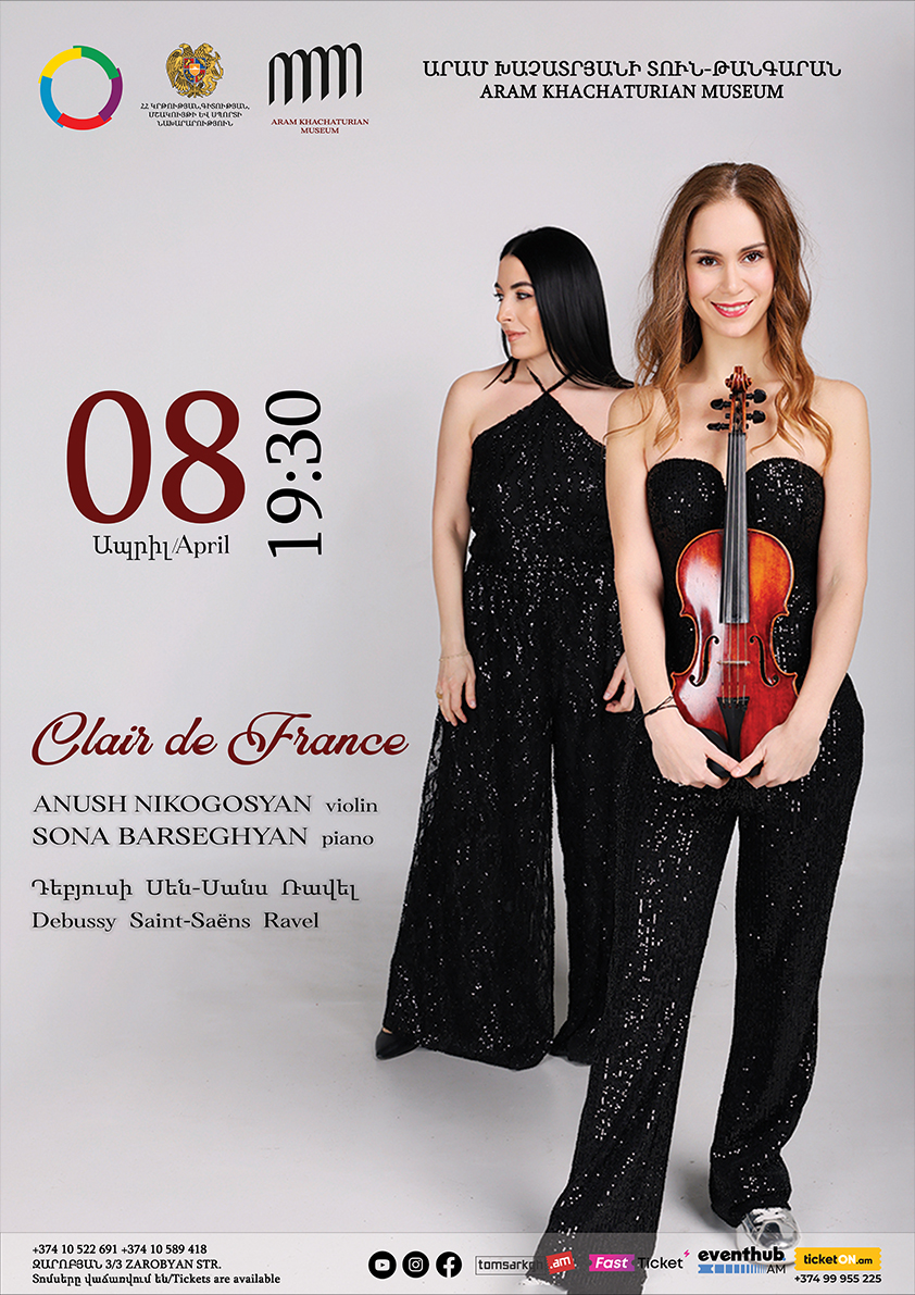 Ֆրանսիական նրբաճաշակ երաժշտություն, հաճելի միջավայր և հիշարժան երեկո է ձեզ սպասվում Արամ Խաչատրյանի տուն-թանգարանի գեղեցիկ համերգասրահում: