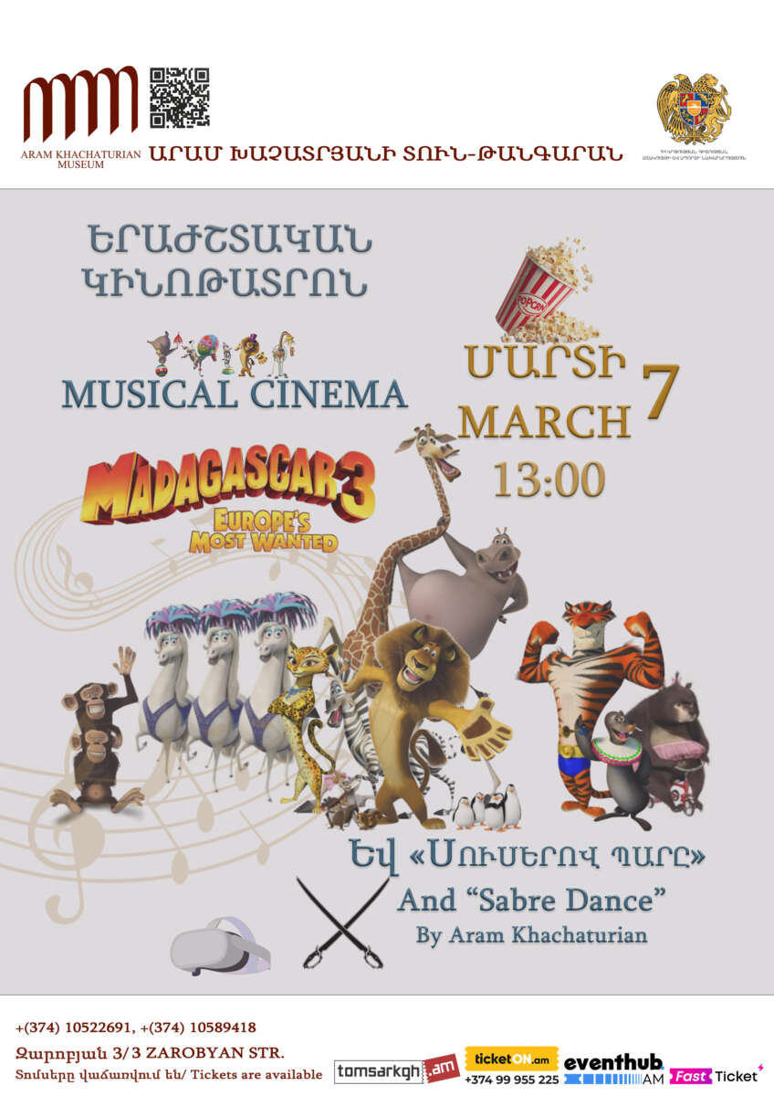 Բաց մի՛ թողեք հրաշալի հնարավորությունը՝ վայելելու «ՄԱԴԱԳԱՍԿԱՐ 3»-ը մեր Երաժշտական կինոթատրոնի հարմարավետ և ջերմ մթնոլորտում։